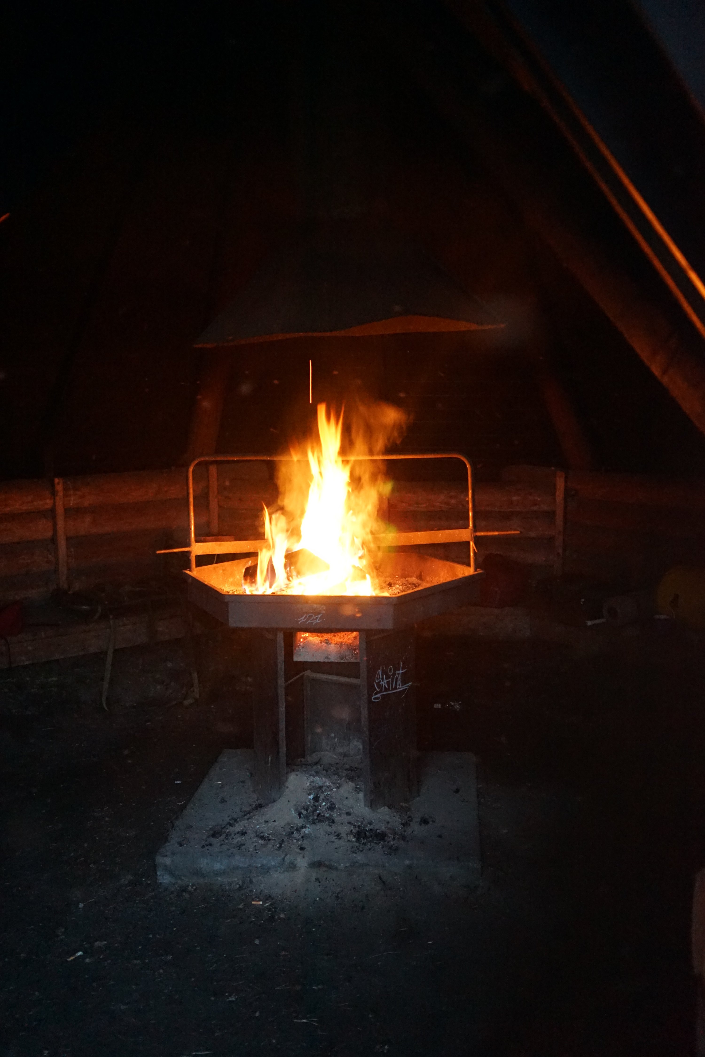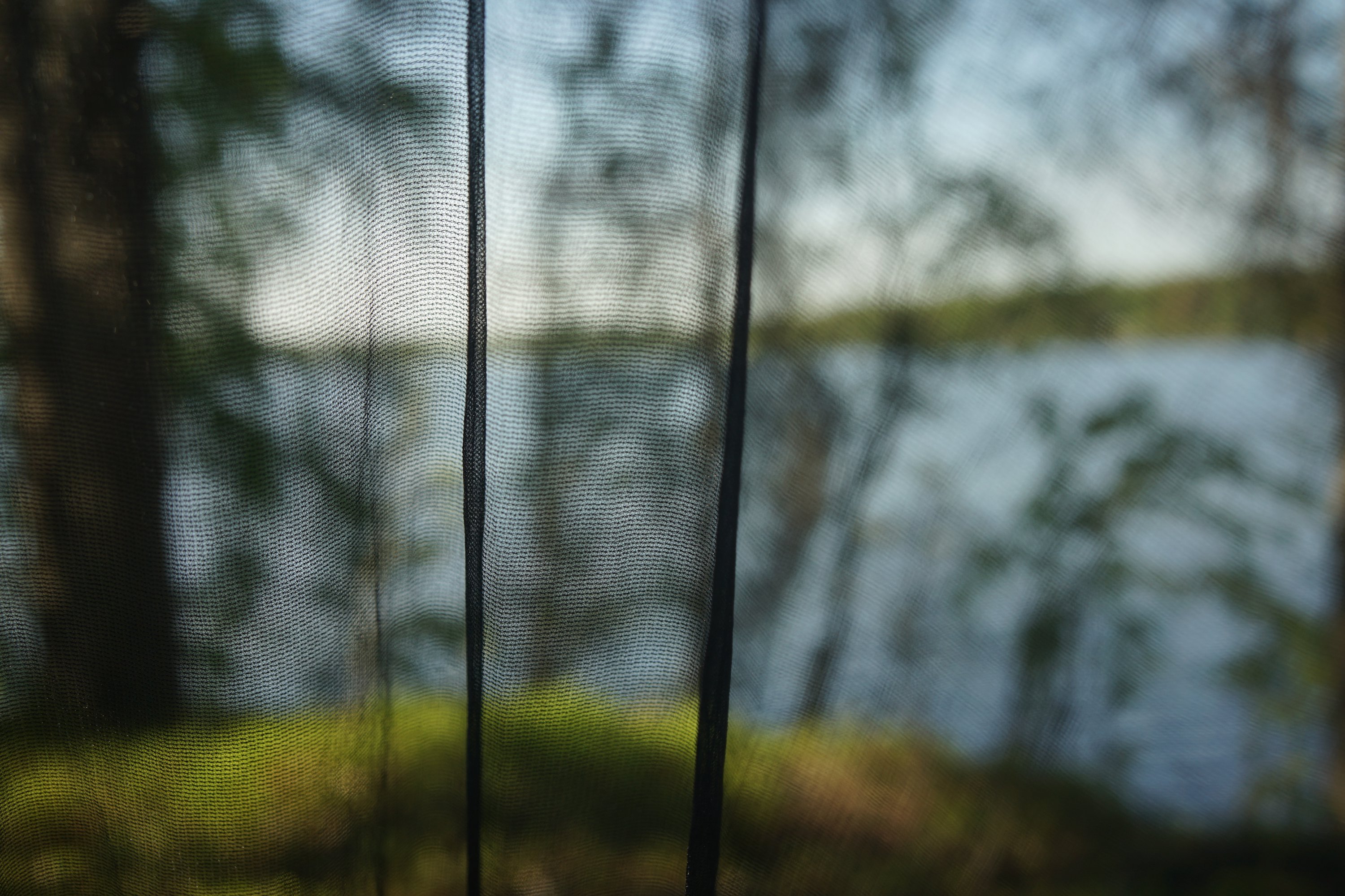 The boat moved badly but I pressed on along the river through Pihtipudas. Plenty of mosquitoes. Eventually I found the next lean-to shelter I had marked on the map. I lit a fire and made half a pot of porridge. The kota was a genuine mosquito HQ. The fire kept them a little at bay, but you couldn't stand next to it the whole time. I rigged the hammock on top of a bench so the mosquito net hung over the sleeping surface — the bench was the bed.