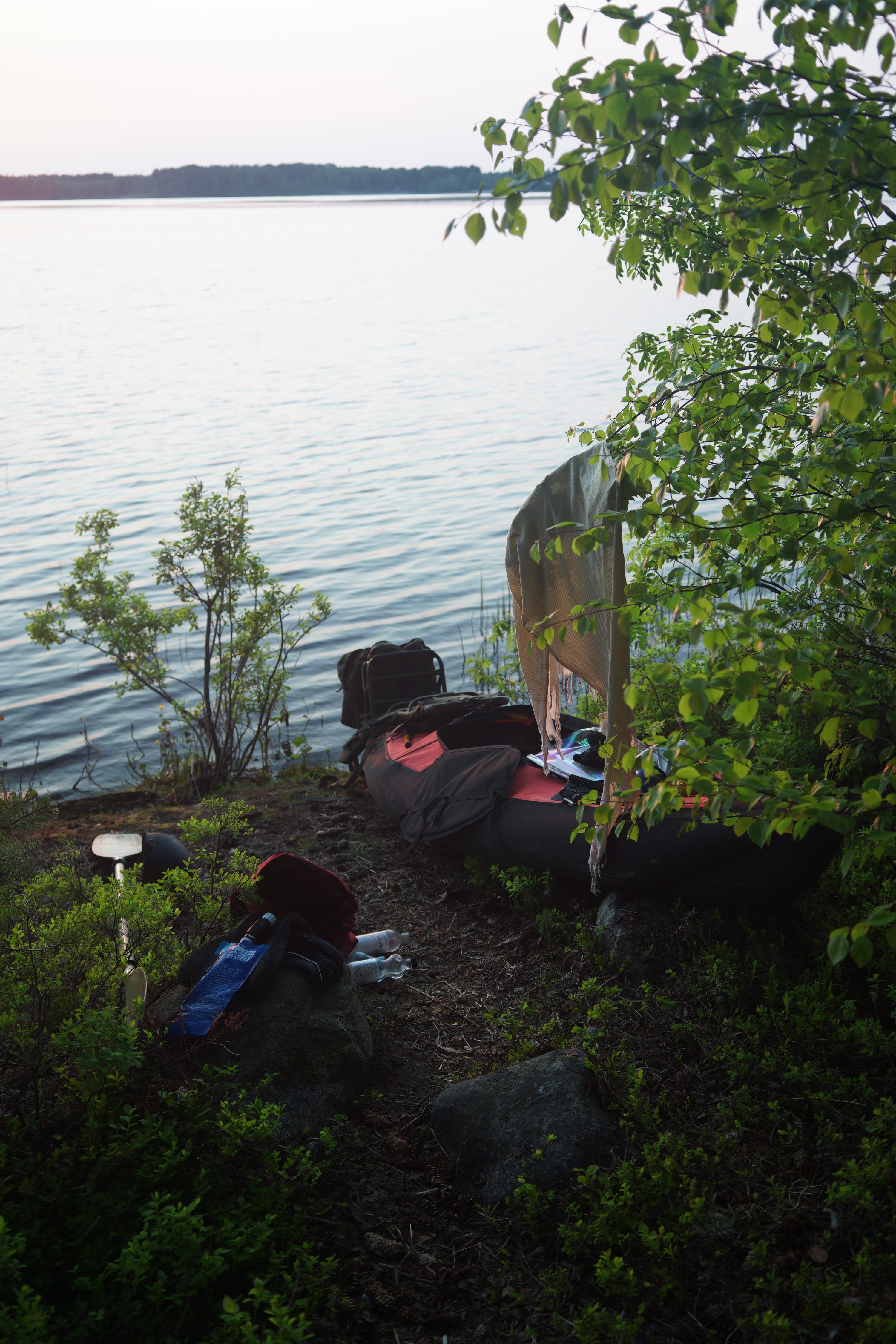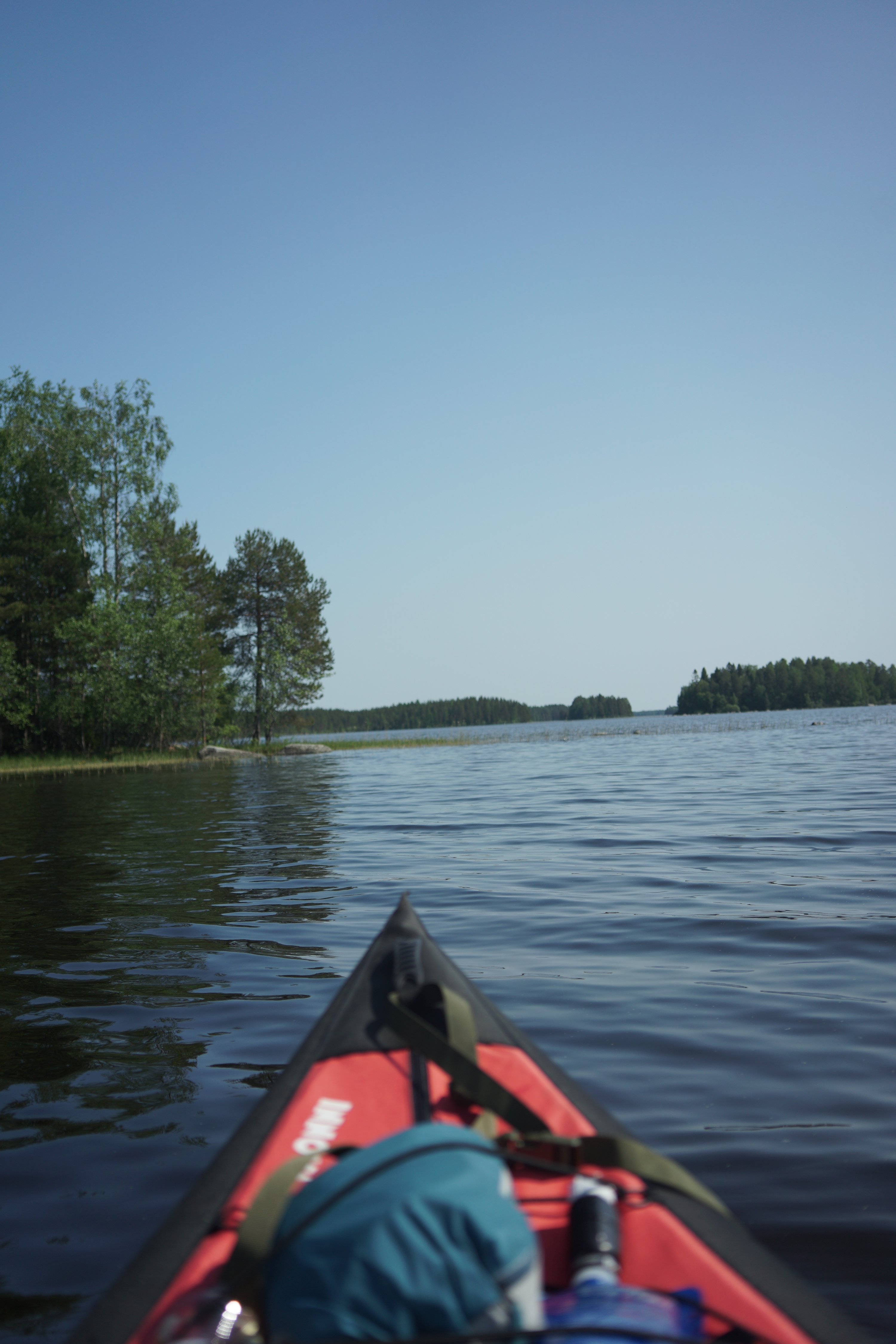 Yesterday was a full day of paddling. I made it to Pihtipudas on Alvajärvi. I had reorganised things a bit and put all the gear in the back. This made the load a bit tippy when getting in, but otherwise fine — and paddling felt easier without stuff cluttering the view in front.
