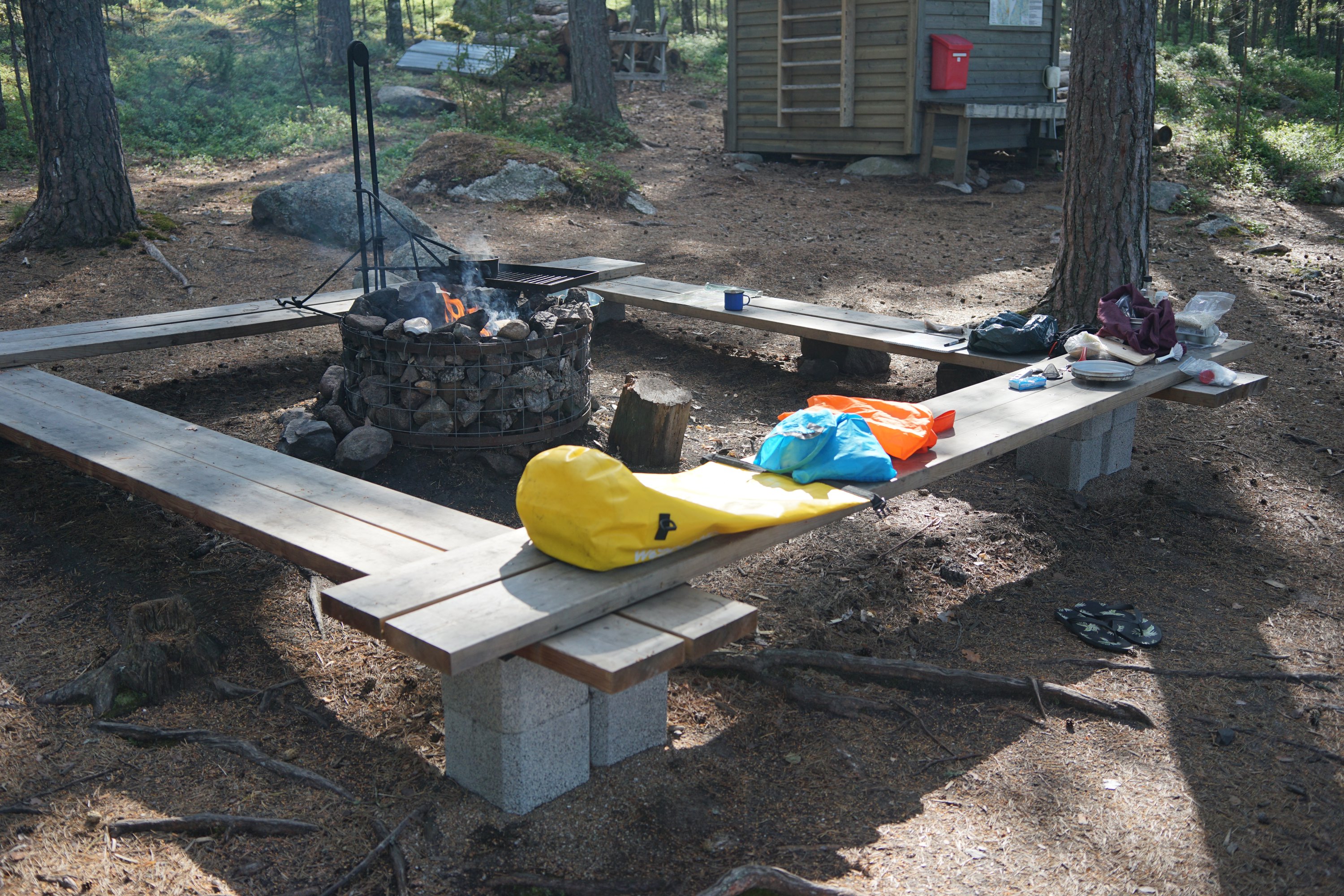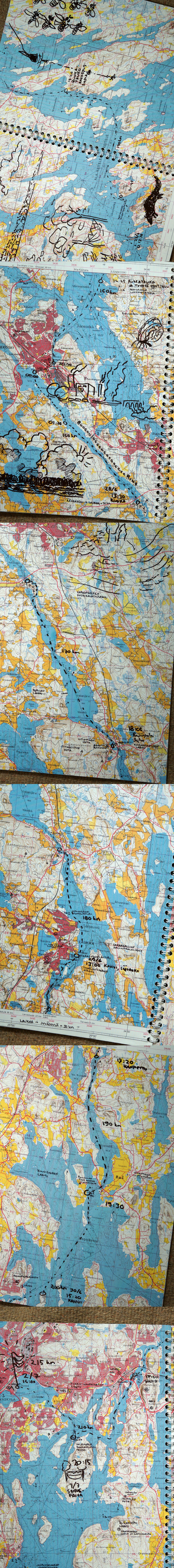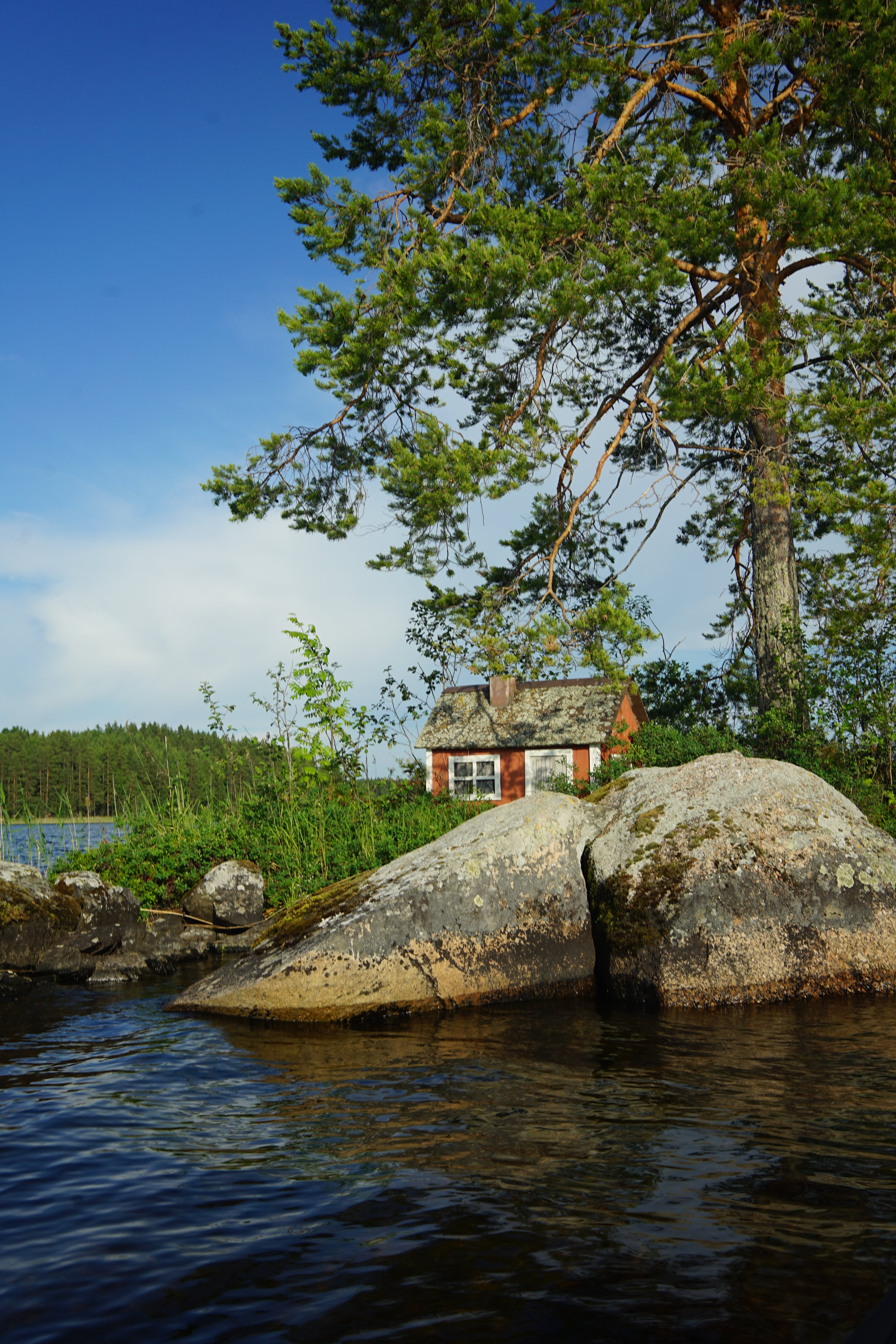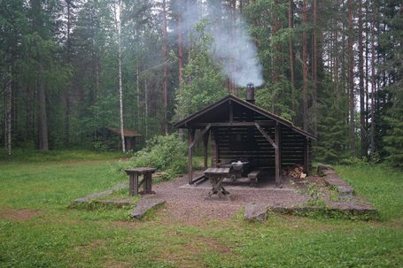 I continued to Kalasaari and cooked supper over wet wood under the cooking shelter. There was quite a mixed group of boaters: a couple in a rubber dinghy, a group of hippies on a mid-sized motor boat, a young engineer on an old speedboat, a fighter pilot instructor on a sailing boat, and a few others. I went to the sauna and apparently the session went on too long without hydrating, because the next day I was completely destroyed.