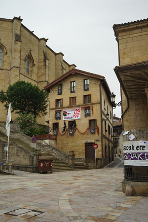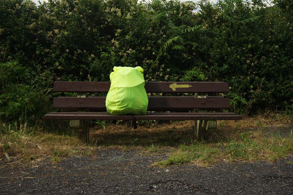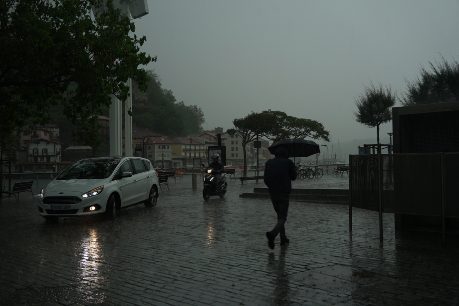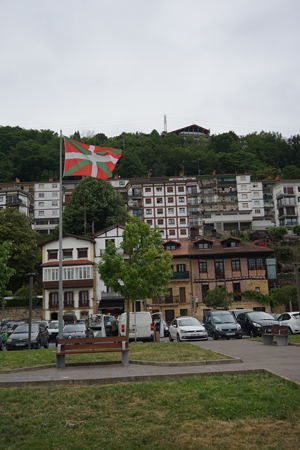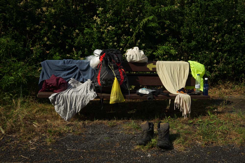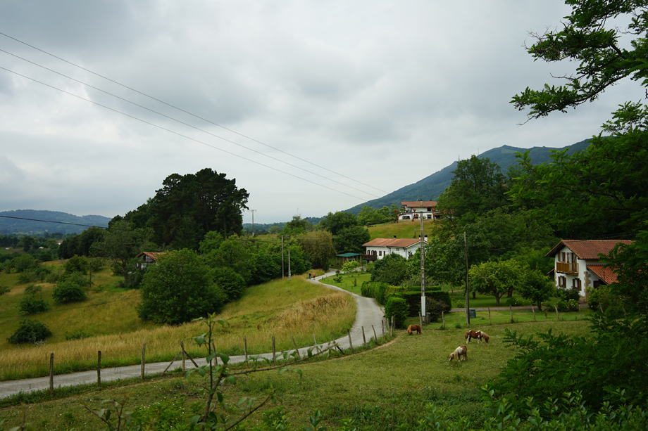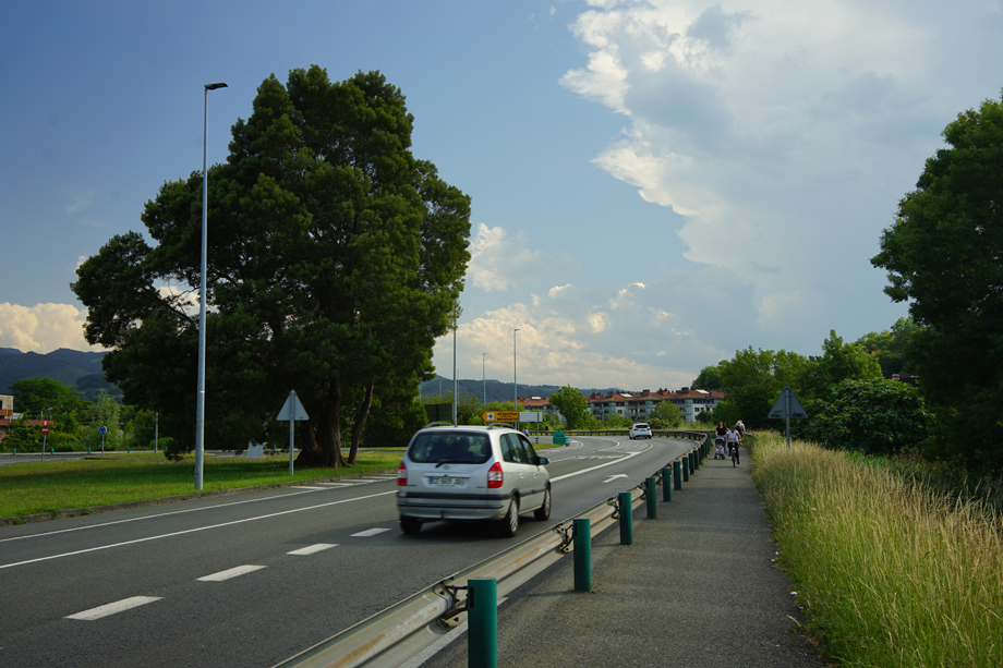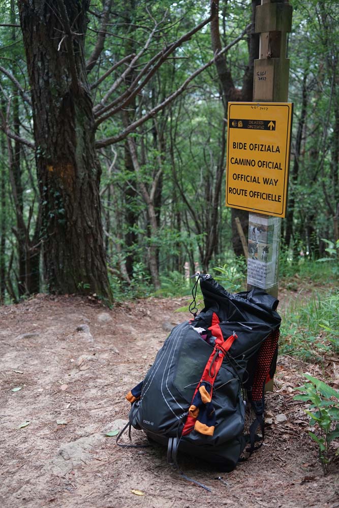 Tie on yllättävän vaativa. Tällä hetkellä on hiekkaa, joka on täynnä kiviä. Pitää katsoa joka askelta. Aiemmin oli sepeliä, jota kukaan ei viitsinyt tasoittaa. Kävelen vuoren rinnettä sivusuuntaan Irúnin kaupungin yläpuolella kohti San Sebastiania. Tässä piti olla ravintola. Ei ollut. Tuossa on pieni lähde. Mikään ei sano, onko se juotavaa.