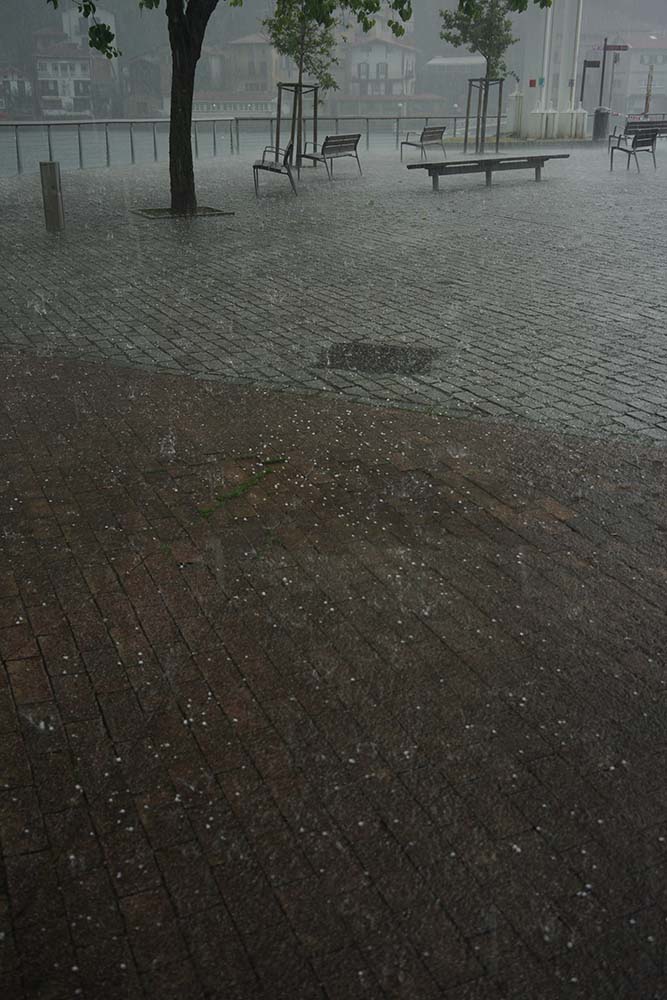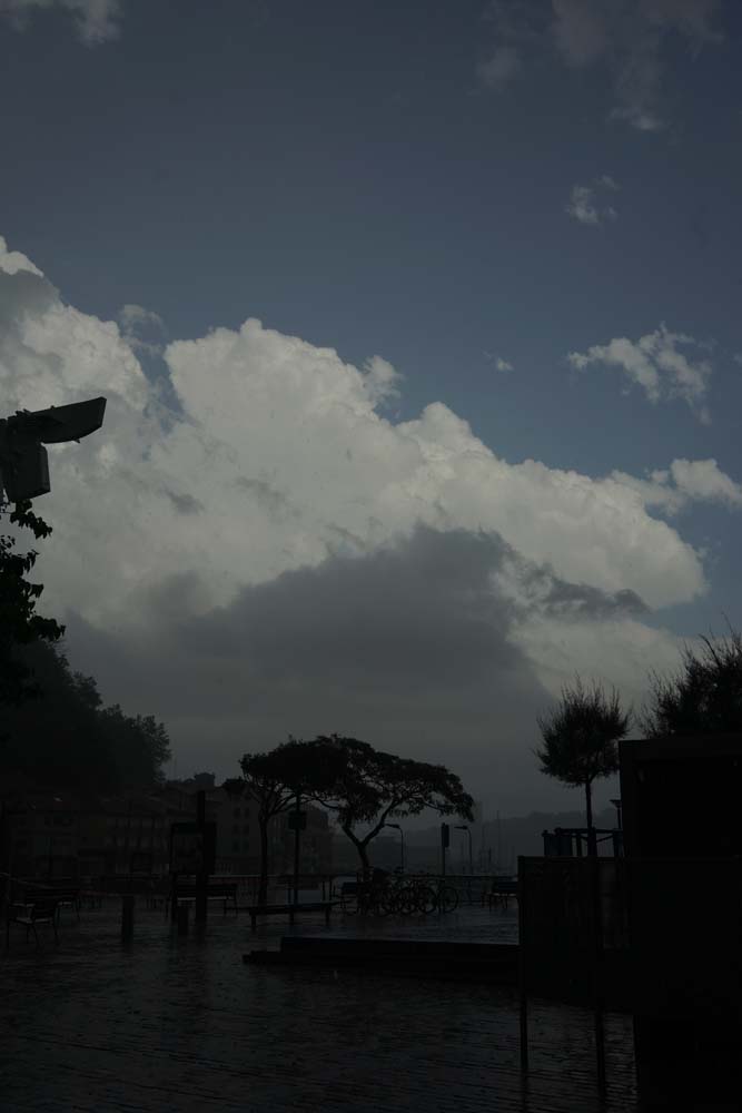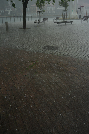 Ukkonen tuli ja raekuurokin, heti kun oli ylitetty joki. Odotin parikymmentä minuuttia sadetta paikallisen Igerin kanssa. Merimiehen näköinen baarimikko. Sanoi, että ei ollut ihan normimyrsky. Mutta nyt taas ihan hyvä sää, jos vain ei tulisi uudestaan.