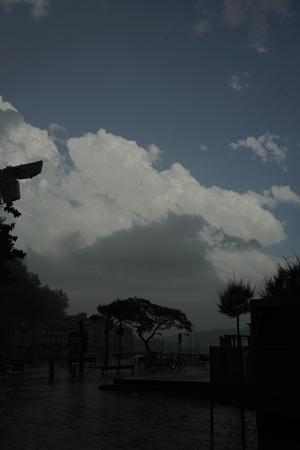 Kävelen satama-alueen läpi. Piti vähän kysyä neuvoa, että mistä saa veneen toiselle puolelle jokea. Kuulostaa että kohta rupeaa satamaan kunnolla. Ukkonen jytisee. En olisi löytänyt tänne ilman neuvoja, näyttää ihan umpikujalta.