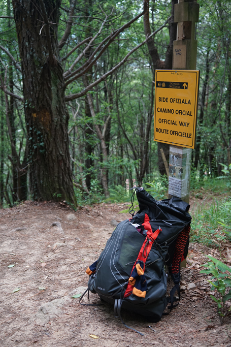 Hukkasin reitin jo toisen kerran tänään. Löysin sen pienen kirkon takaa. Ei näkynyt keltaisia nuolia missään. Oli vain simpukan kuva seinässä. Sen jälkeen näkyi nuoletkin.