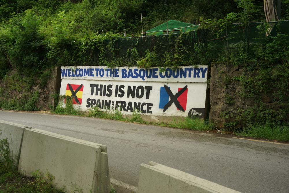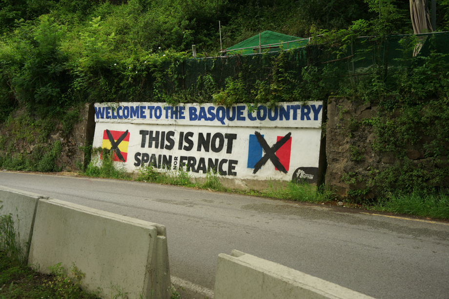 Sain tässä sellaisen ajatuksen, että jos jatkan Mutrikusta rantaa pitkin Bilbaoon. Siten ei tulisi yhtään pitkää etappia. Ja täällä menee näitä muita polkuja, joten ei tarvitsisi edes kävellä koko ajan asvaltilla. Tämä on B-suunnitelma, mutta ensin pitää päästä sinne Mutrikuun. Kävelen autotien laitaa. En halua kiivetä tänään yhtään. On sellainen tiukka yskä ja nuha. Sama tauti, joka oli lennon jälkeen, tuli takaisin. Tuossa meni fillaristi, jolla oli laukussa simpukka. Tämä reitti taitaa olla virallinen fillari-Camino.