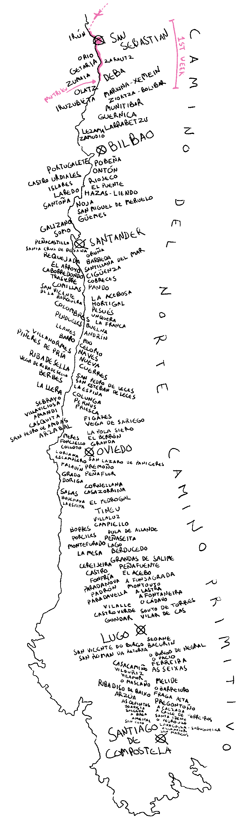 Tapasin eilen pariskunnan Christian ja Paola, Saksasta ja Meksikosta. Christian oli ollut Kouvolassa. Joku sen kaveri oli opiskellut siellä. Se oli käynyt kyläilemässä, syönyt itsetapettua kuhaa. Nämä olivat ensimmäiset sosiaaliset ihmiset, joita tullut vastaan. Tai siis sillä lailla sosiaaliset, että kutsuvat syömään. Myös he sanoivat, että eivät olleet tavanneet kunnolla oikein ketään, niin eivät osanneet verrata millaista jengiä täällä Camino del Nortella on verrattuna Camino Francesiin. Sanoivat, että Frances on massaturistitapahtuma, länteen päin valuva festivaali.