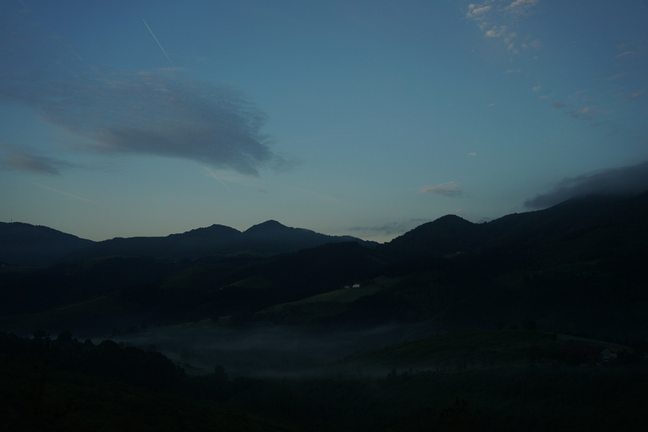 Ei mennyt putkeen viime yö. Oli kylmä, en nukkunut. Nyt on kello kuusi ja tallailen jo menemään. Debaan 8 km. Oli se nainen oikeassa, että ei ollut järkeä jatkaa matkaa. Tänne polulle kun olisi jäänyt pimeässä, niin ei olisi ollut niin kiva. Maisemat on hienot, mutta ei jaksa ottaa kuvia. Pitää päästä Debaan. Nälkä.