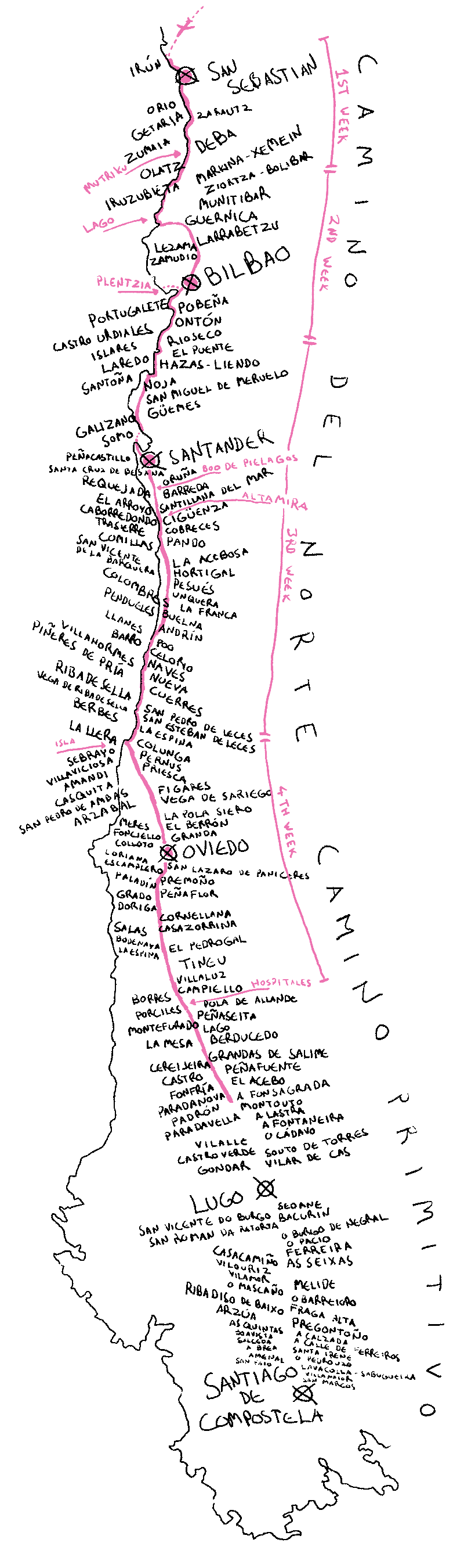 En ole nauhoittanut neljään päivään. Olin Oviedossa vankilan näköisessä alberguessa. Oviedo oli harvinaisen mukava kaupunki. Ehkä kun niillä ei ole biitsiä, niin ovat panostaneet enemmän viihtyvyyteen muilla tavoilla. Kiva puisto ja vanha kaupunki. Kun etsin ulospääsyä kaupungista, tapasin Zoran, Hannahin ja Stephanin, ja me käveltiin sillä porukalla koko päivä ja jonkun verran seuraavaa päivää. Stephaniella jalkoja särki niin paljon että hän ja Hannah jäivät jatkamaan hitaampaa vauhtia. Jatkoin Zoran kanssa eteenpäin.