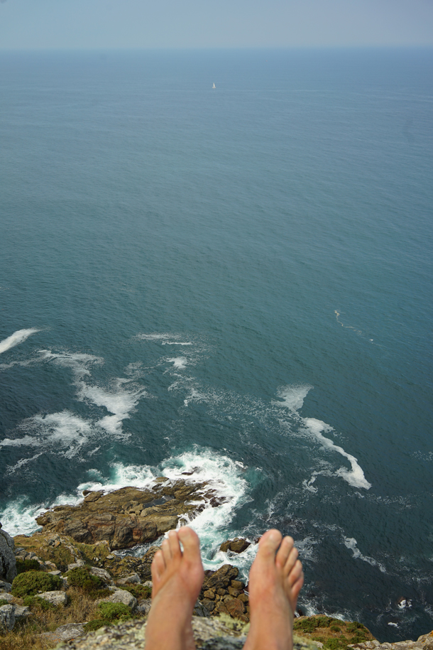 Kävin juuri Fisterra majakalla. Kun olin tallaamassa sinne päin, näin Zoran ja Natalien. Olivat ottaneet bussin ja kävelleet osan matkaa Muxiasta tänne päin. Heillä oli lennot varattuna, joten eivät ehtineet kävellä koko matkaa Fisterraan. Kun pääsin majakalle, näin korealaisen miehen ja onnittelin häntä loppuun pääsemisestä. Löysin myös hyvän kielekkeen meren yllä, josta heittää se murheiden kivi. Nyt kolme kilsaa takaisin, sitten suihku, sitten ravintola. Sitten en tiedä mitä.